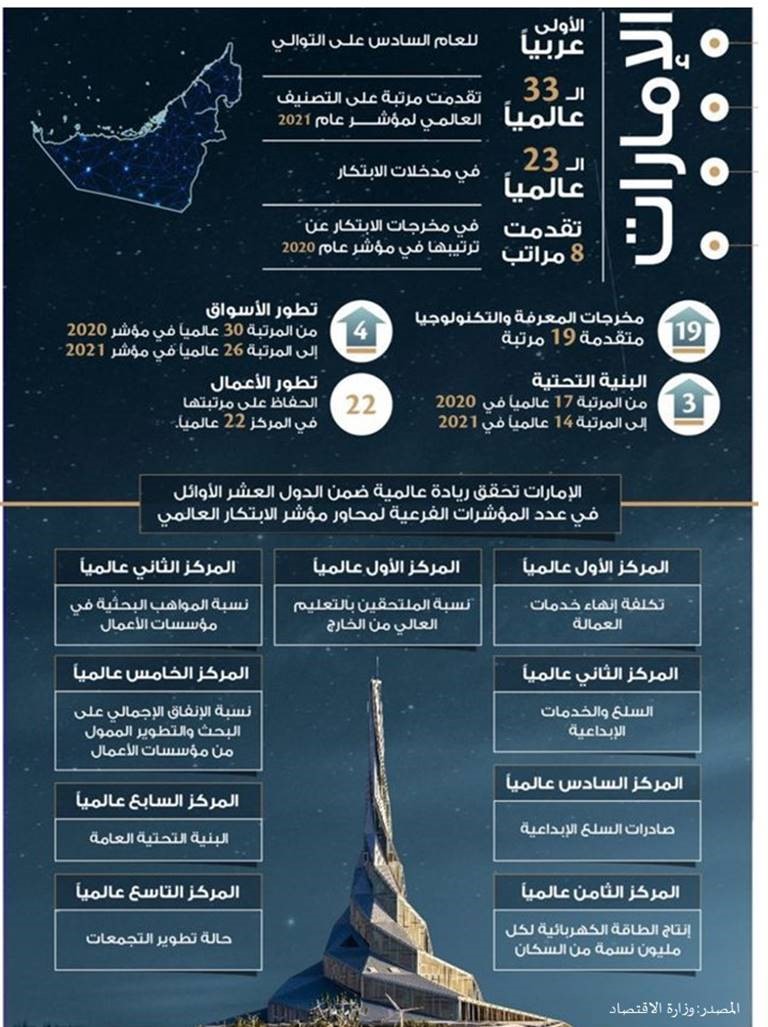 الإمارات الأولى عربيا في مؤشر الابتكار